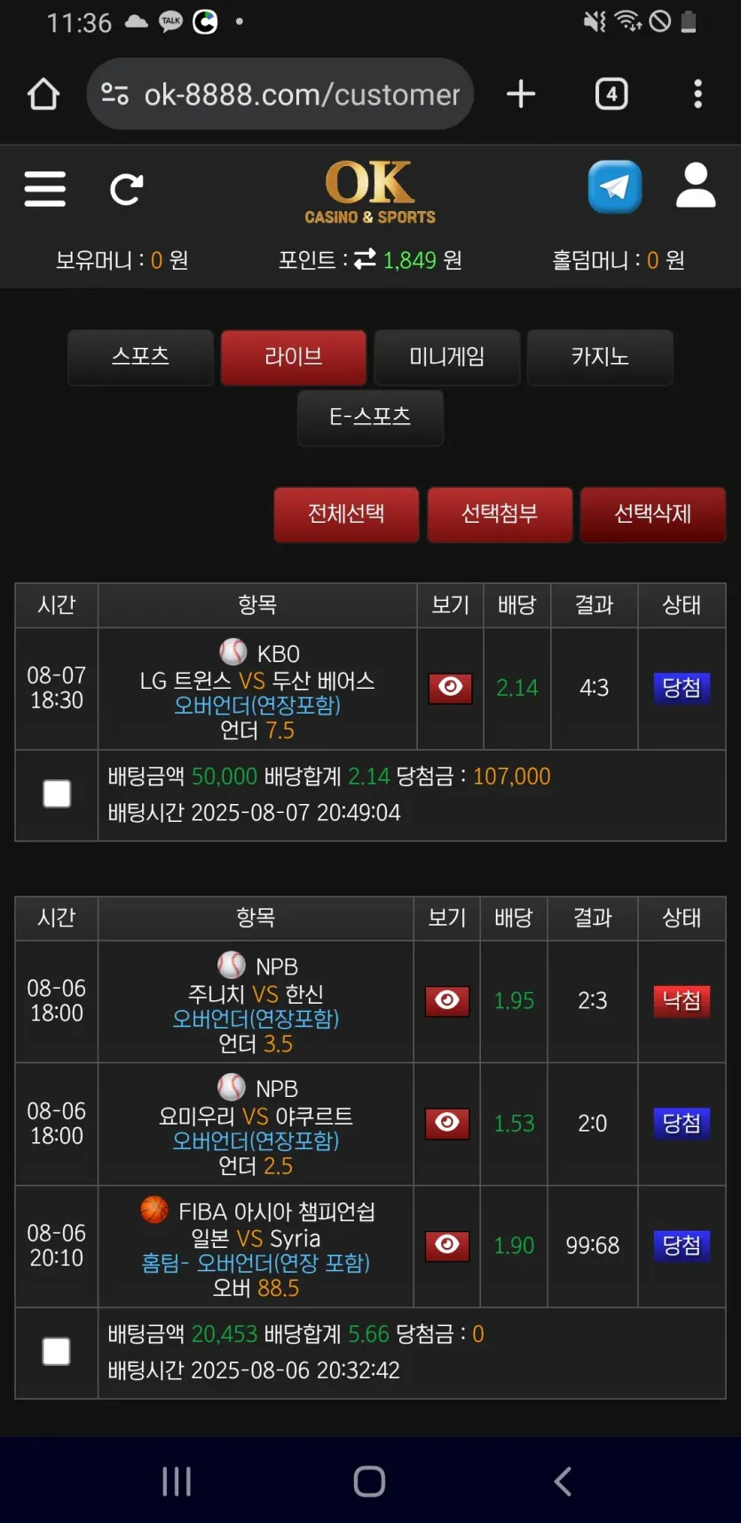 다행히 두산 오버 단폴은 먹었네요 역시 오케이벳 갓갓입니다 제 원픽 ㅎㅎ