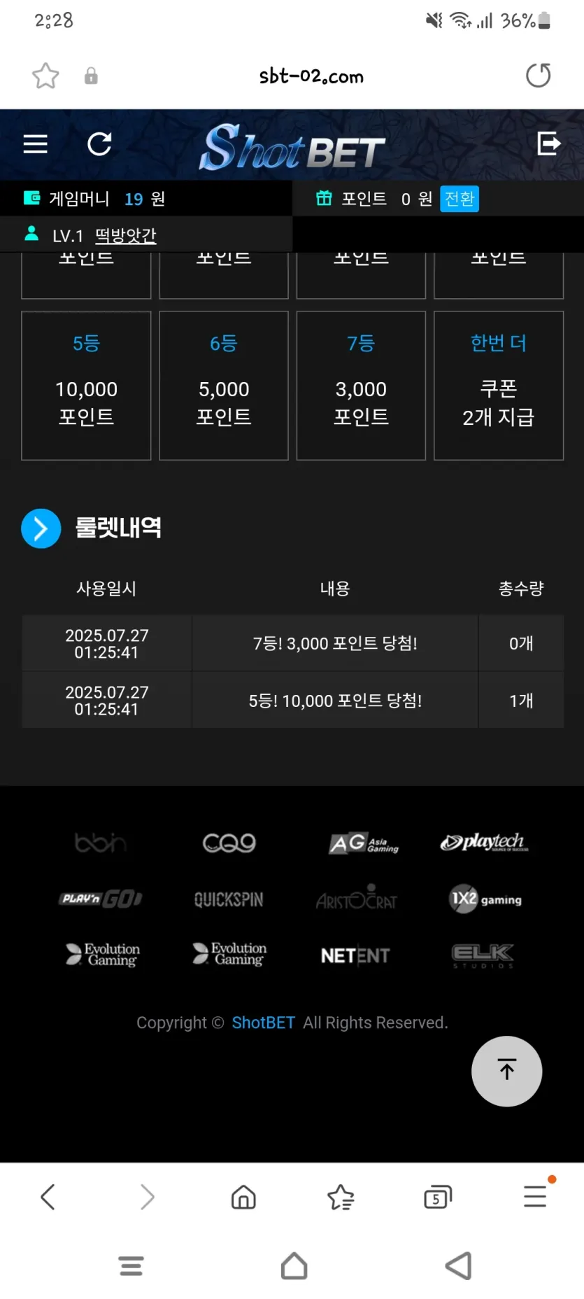 출석이벤으로 룰렛도 주는대 꽝은 없네요 포인트 잘주네요 ㅎ