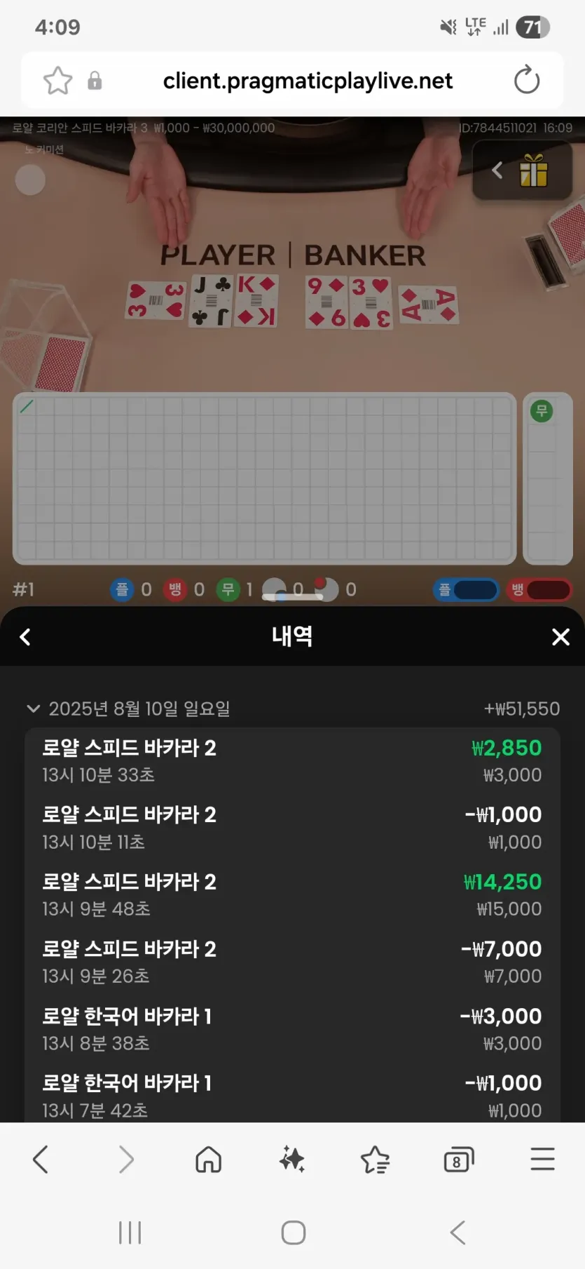 복날 이벤트 받고 어제는 50정도 이겼다가