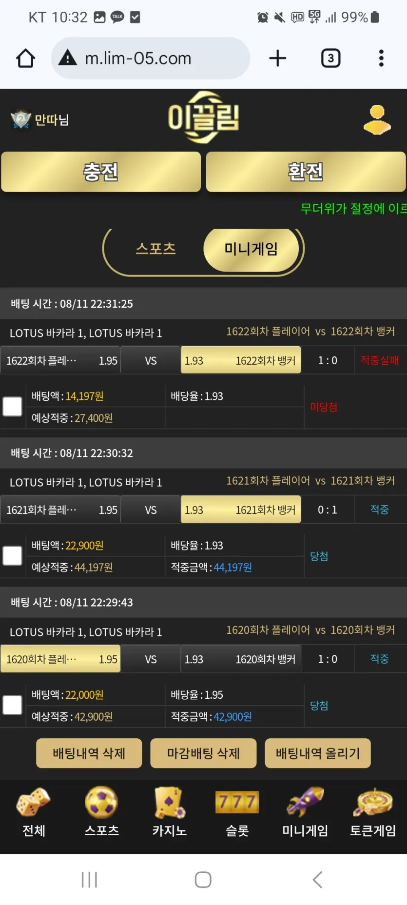 이 끌림 후기입니다 만따 비제휴 1 1199 1 08.11 22:33 안녕하세요 이 끌림 후기입니다 애착 사이트입니다 충환 빠르구 경기도 다양하게 나누어져 있어서 배팅하기 편하구요 이벤트도 많아서 혜택 볼게 많아요 그림장도 깔끔합니다무엇보다 안전인데 믿고 쓰셔도됩니다! 1