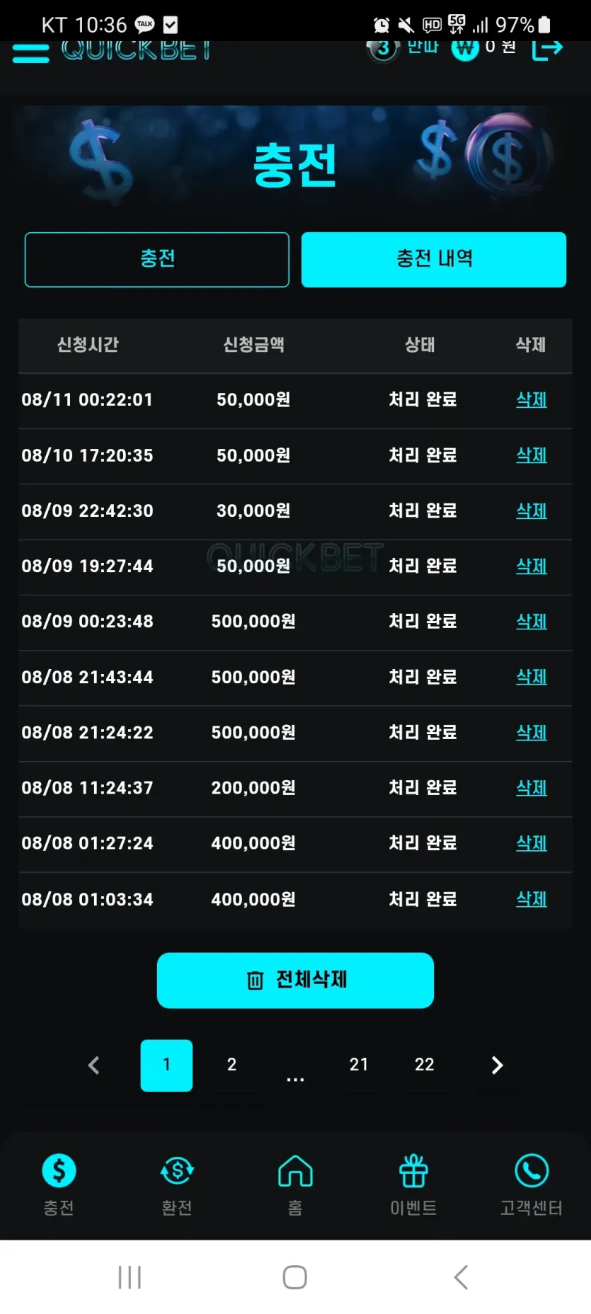 퀵벳 후기 만따 비제휴 1 1166 1 08.11 22:36 안녕하세요 퀵벳 후기입니다 정말 자주 쓰는곳입니다 충환 빠르구용 경기도 많고 다양한 이벤트가 있어서 혜택 받아보실 수 있구용 그림장도 깔끔합니다무엇보다 안전인데 퀵벳 유명한거 아시죠ㅎ 사대맞춰보세요! 1