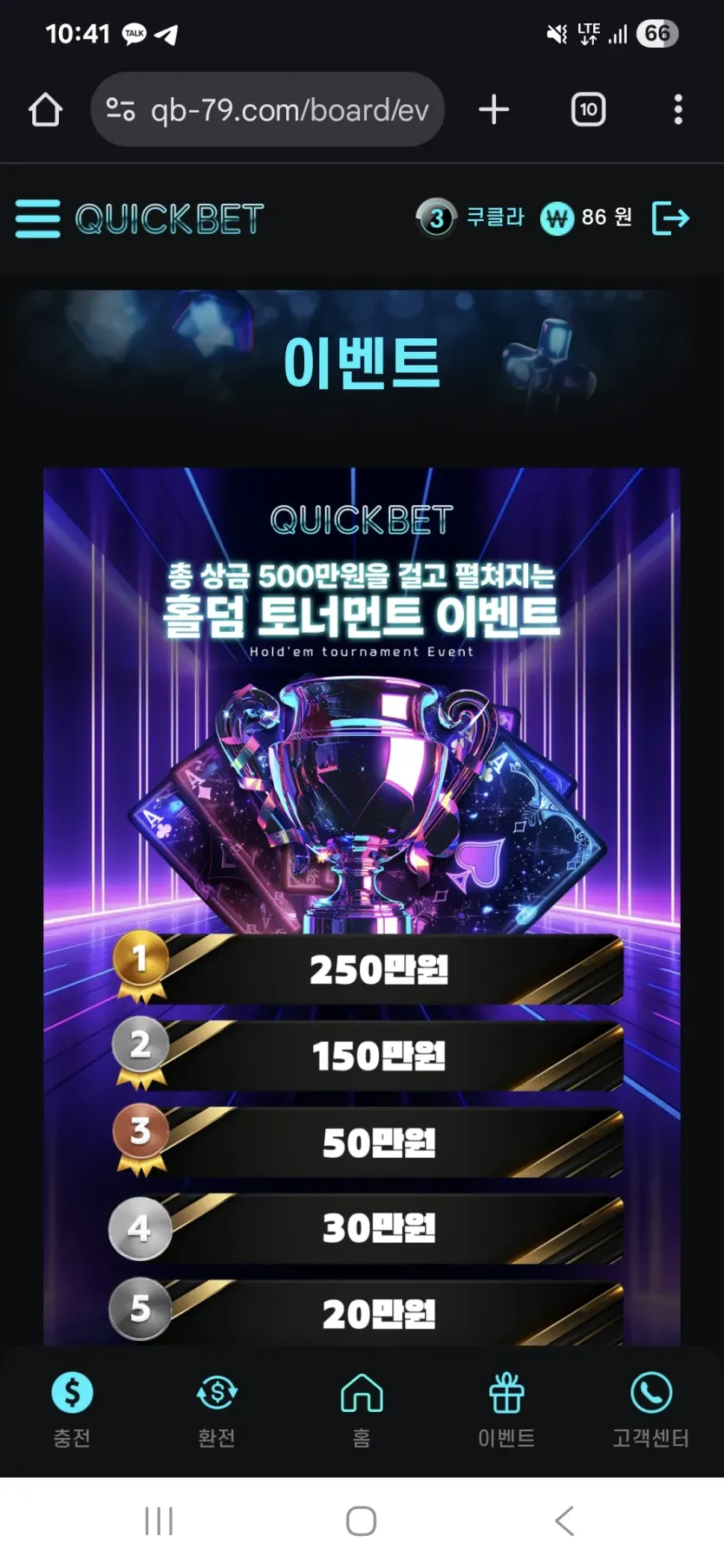 퀵벳 홀덤토너먼트 이벤트 후기