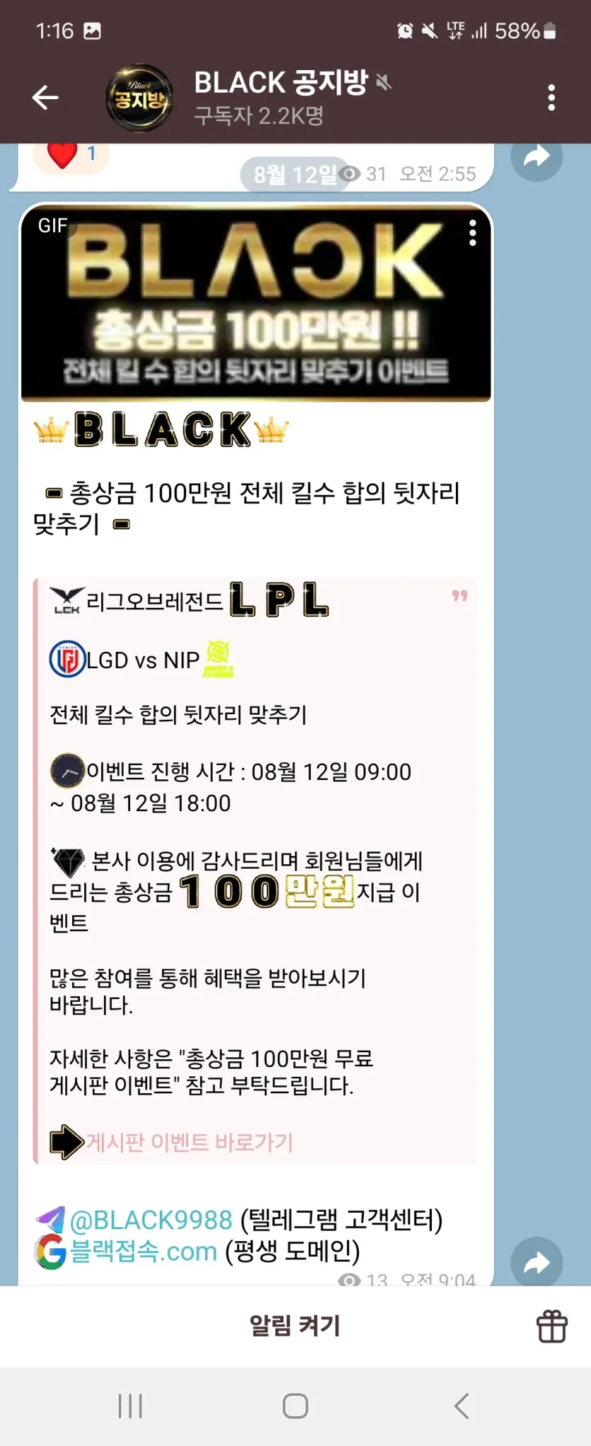 블랙후기 므따 비제휴 0 1384 0 08.12 13:17 매일매일 공지방에서 이렇게 점수맞추기 등등 다양하게 포인트 주시구 명예의전당이벤트로 배당순위 적중금순위 등등 1~5등 포인트 주는 혜자스러운 곳입니다. 오셔서 한번 수익 챙겨보세요~ 블랙접속 .com 0